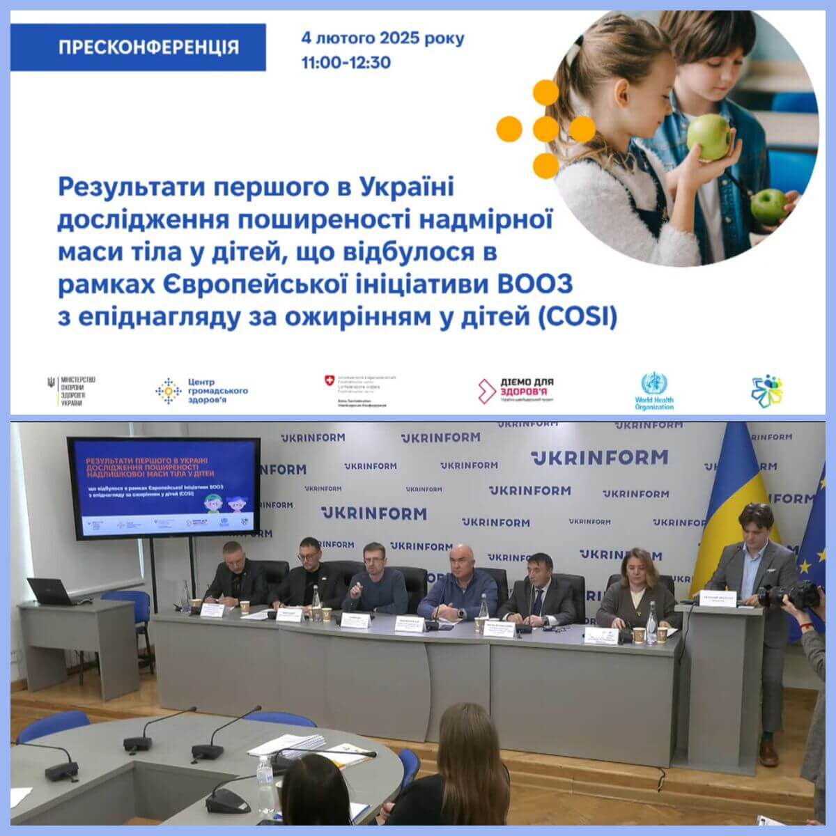 Сьогодні, 4 лютого, під час пресконференції у Києві презентували результати першого в Україні дослідження щодо поширеності надлишкової маси тіла у дітей в рамках Європейської ініціативи ВООЗ з епіднагляду за ожирінням у дітей (COSI).