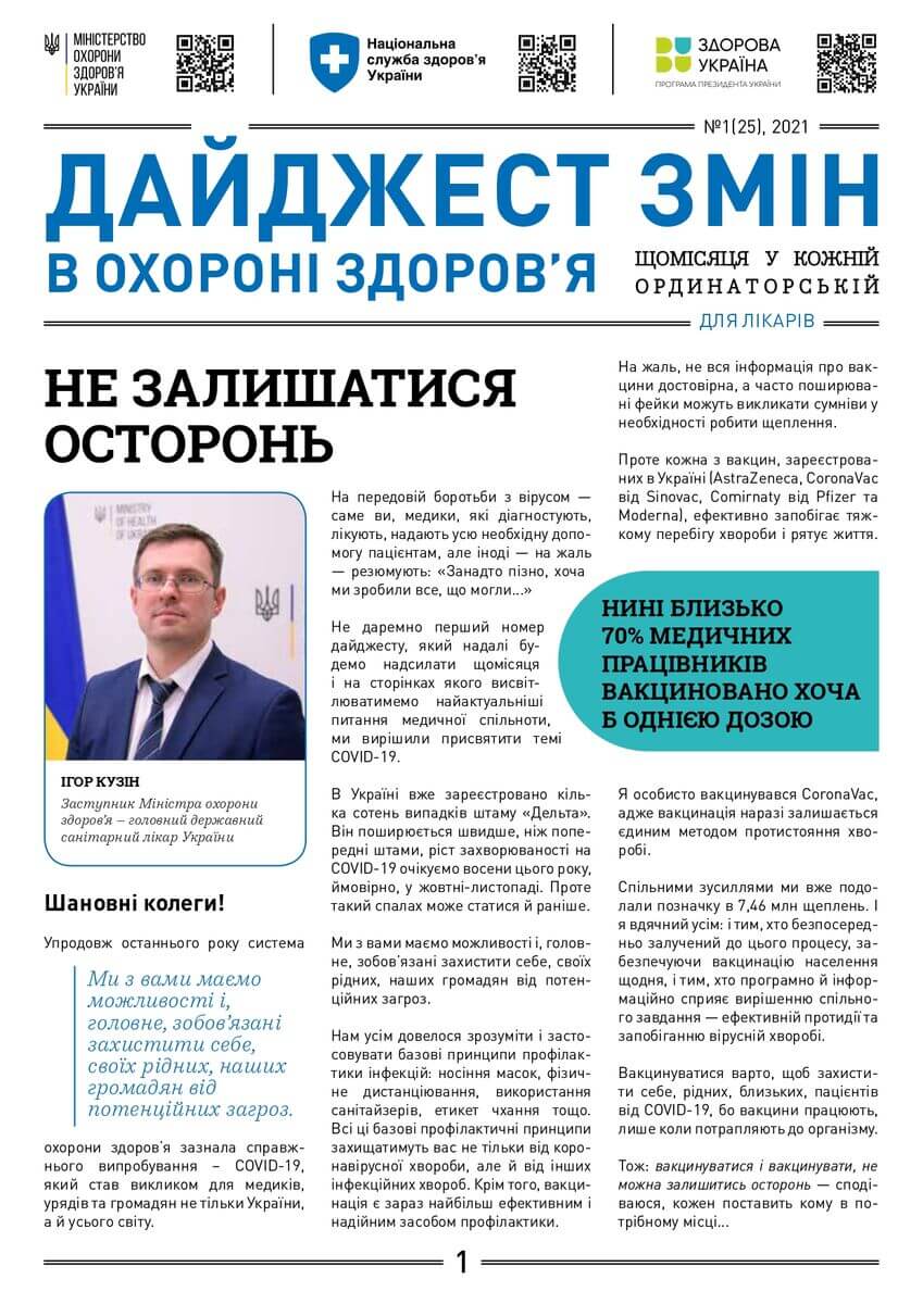 "Дайджест змін в охороні здоров’я" — збірник матеріалів, який буде корисний МЕДИЧНИМ ПРАЦІВНИКАМ та іншим фахівцям у сфері охорони здоров’я.