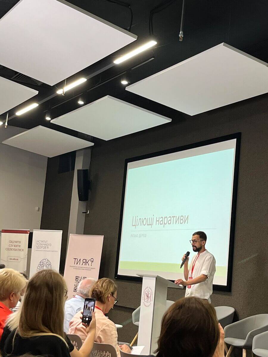 «Як (не-) зцілюються наслідки колективної травми» - у доповіді психотерапевта, дитячого психіатра Олега Романчука йшлося про пошук шляхів допомоги тим, хто опинився у важкій травматичній ситуації.