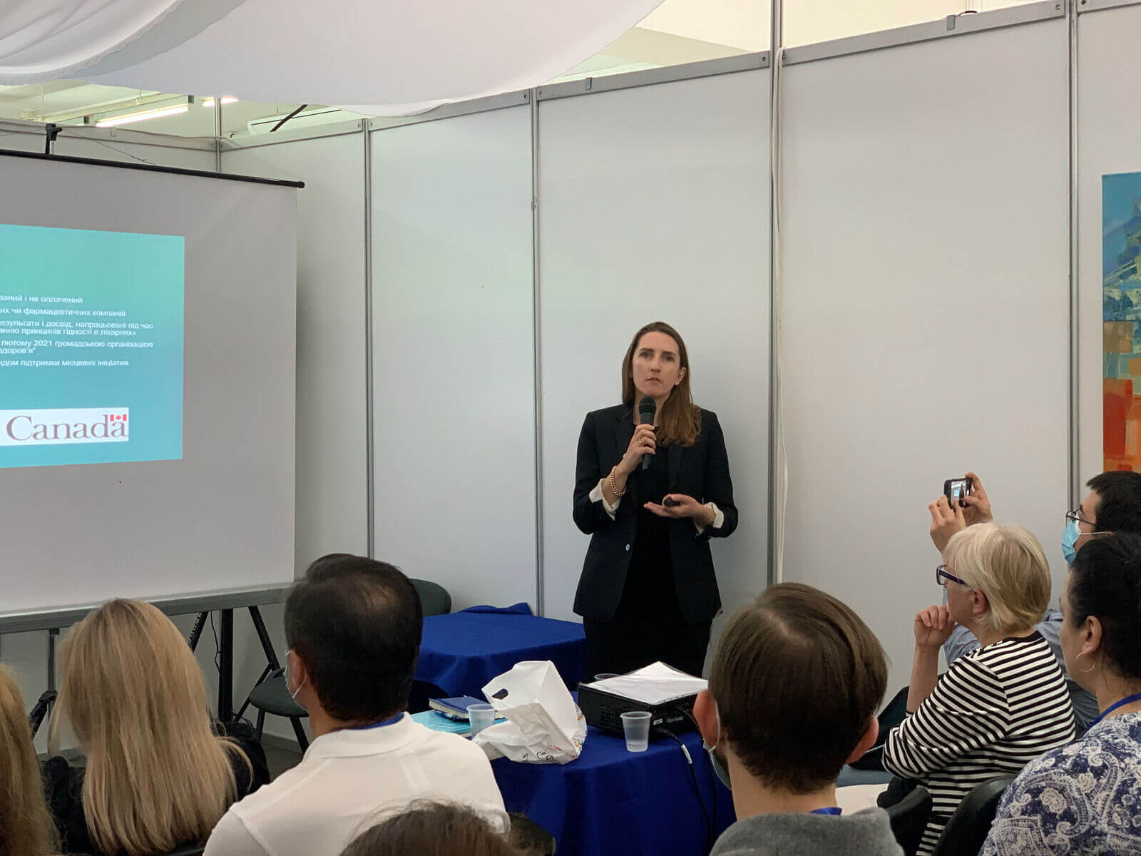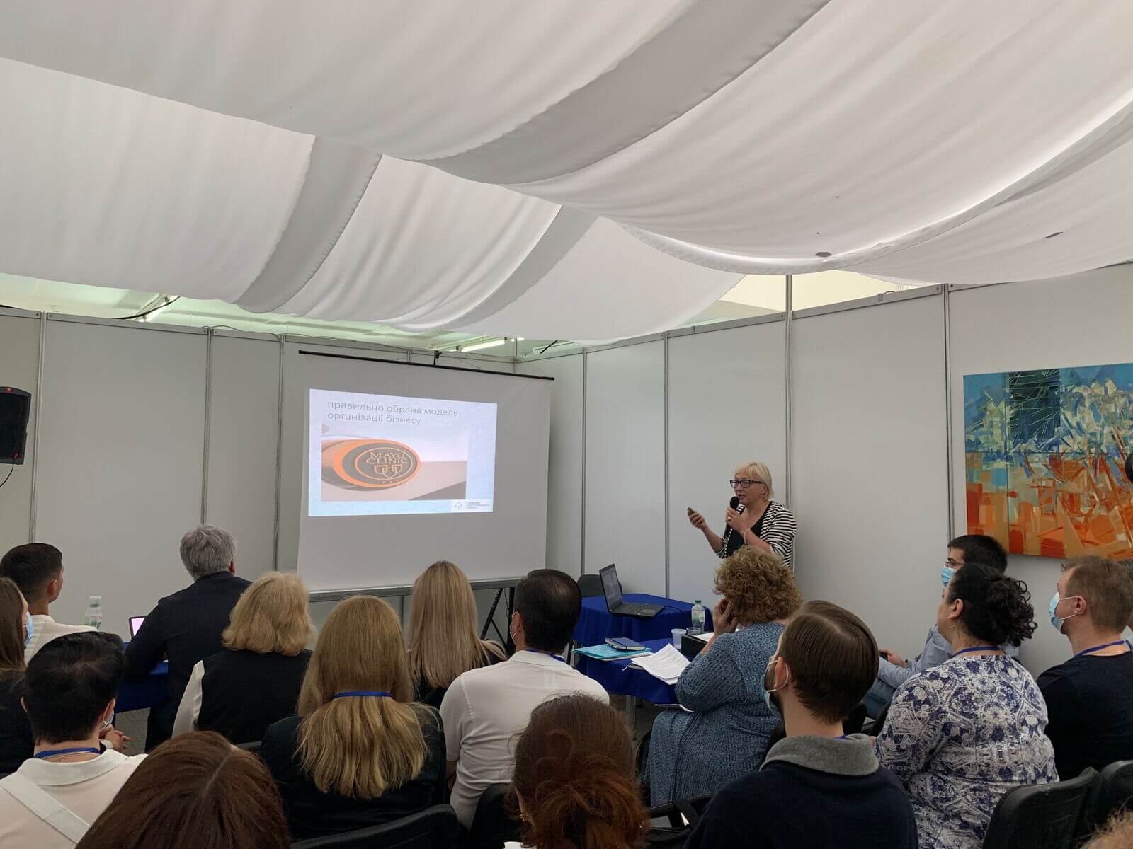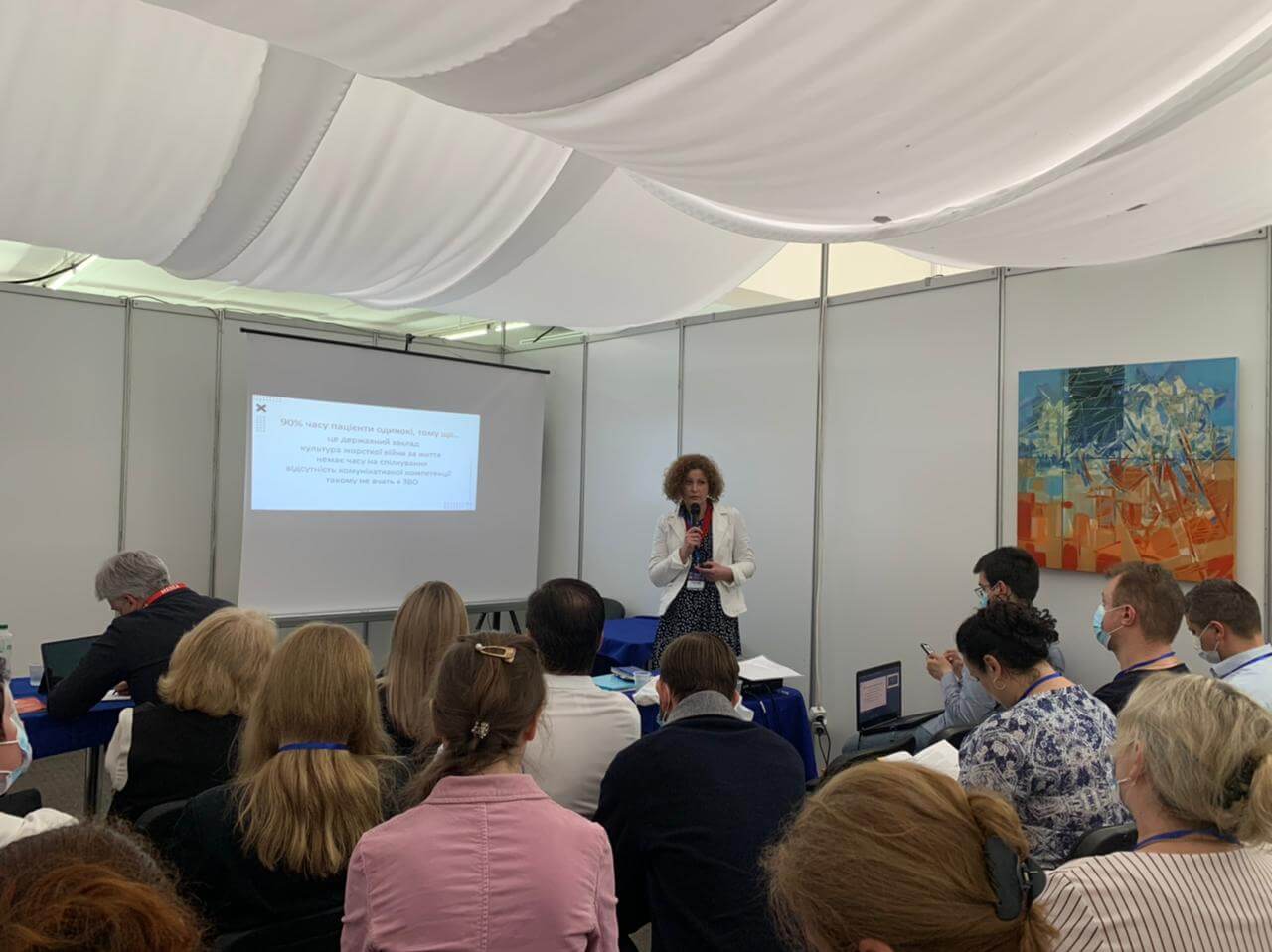 Мар’яна Служинська, директорка Львівського обласного центру громадського здоров’я, виступила з презентацією «Сервіс в медичному закладі: від черги в поліклініці до безпеки медика та пацієнта».