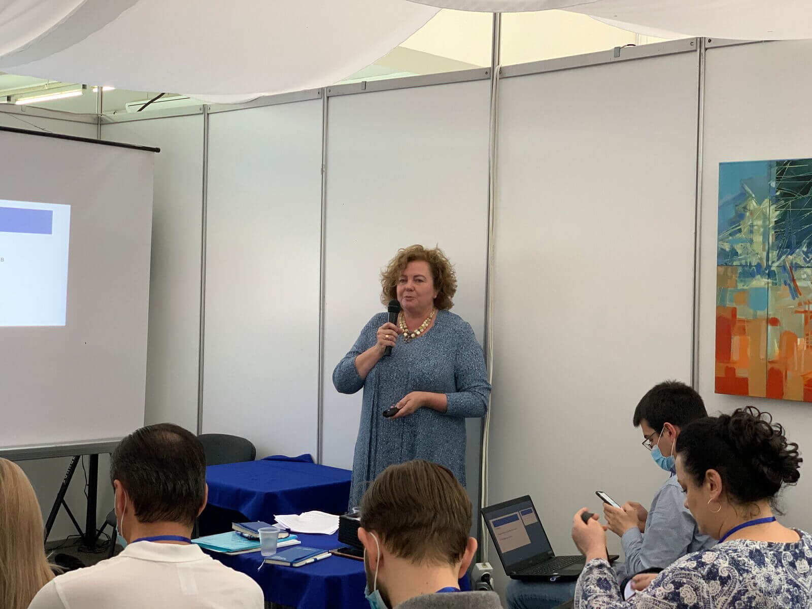 Наталія Рудакова, викладач кафедри психічного та фізичного здоров’я, розробник курсу «Людяність та емпатія для ЗВО» в рамках україно-швейцарського проєкту «Розвиток медичної освіти», виступила з доповіддю «Цінності людяності та емпатії в культурі охорони здоров’я», звернувши особливу увагу на проблему самотності пацієнта у палаті медичного закладу: «Ми маємо прислухатись до пацієнта і залучати його до процесу лікування, адже пацієнт спільно з лікарем несе відповідальність за результат лікування. Навичкам спілкування треба починати вчити в університеті. Сервіс — це комунікація».