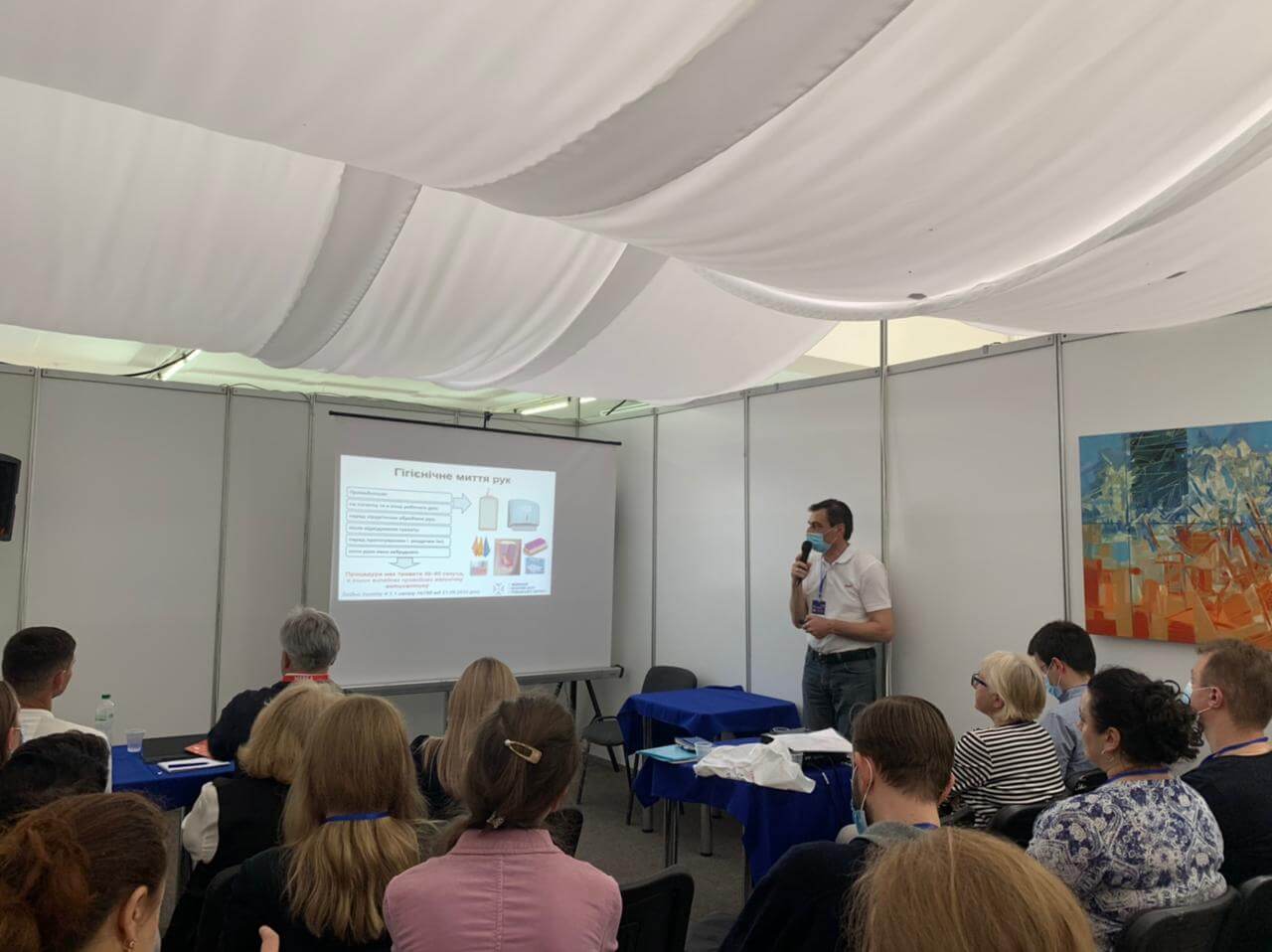 Андрій Сороколіт, завідувач відділу моніторингу і оцінки Львівського обласного центру громадського здоров’я, ознайомив учасників з принципами інфекційного контролю в закладах охорони здоров‘я та особливостями профілактики внутрішньолікарняних інфекцій, виділив п’ять ключових моментів щодо дотримання гігієни рук. «Кожну інфекцію можна подолати, якщо її вивчити», — впевнений Андрій Сороколіт.