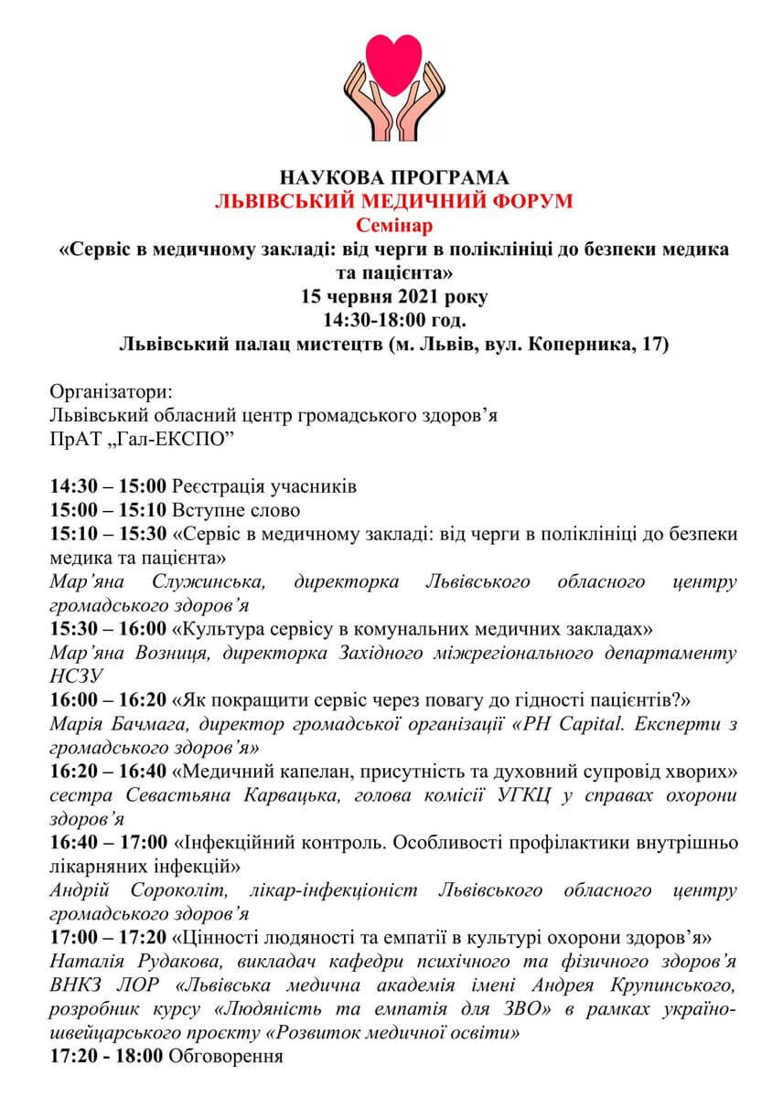 В рамках наукової програми 26-го Львівського медичного форуму та медичної виставки «ГалМед» відбудеться семінар «Сервіс в медичному закладі: від черги в поліклініці до безпеки медика та пацієнта».