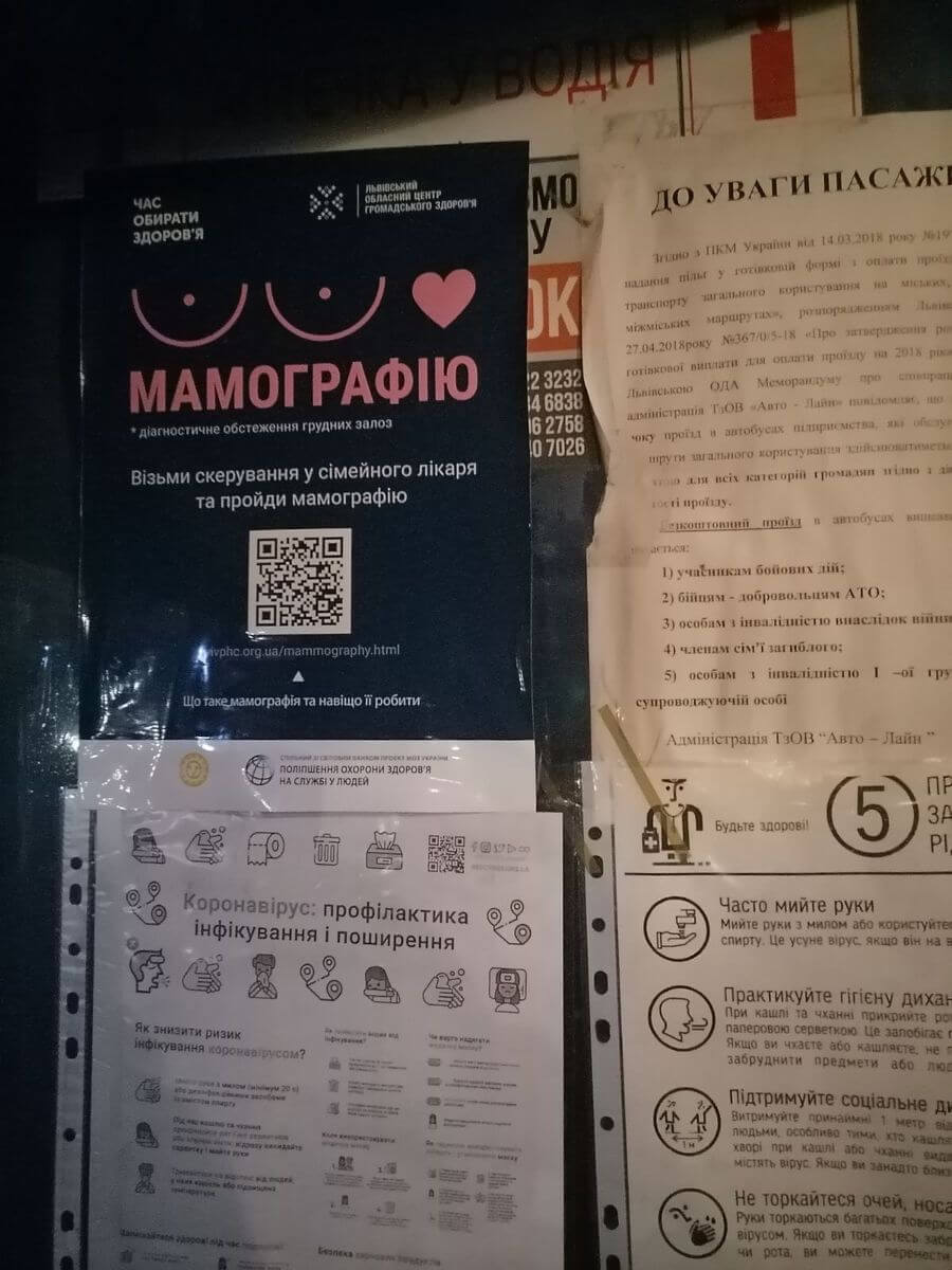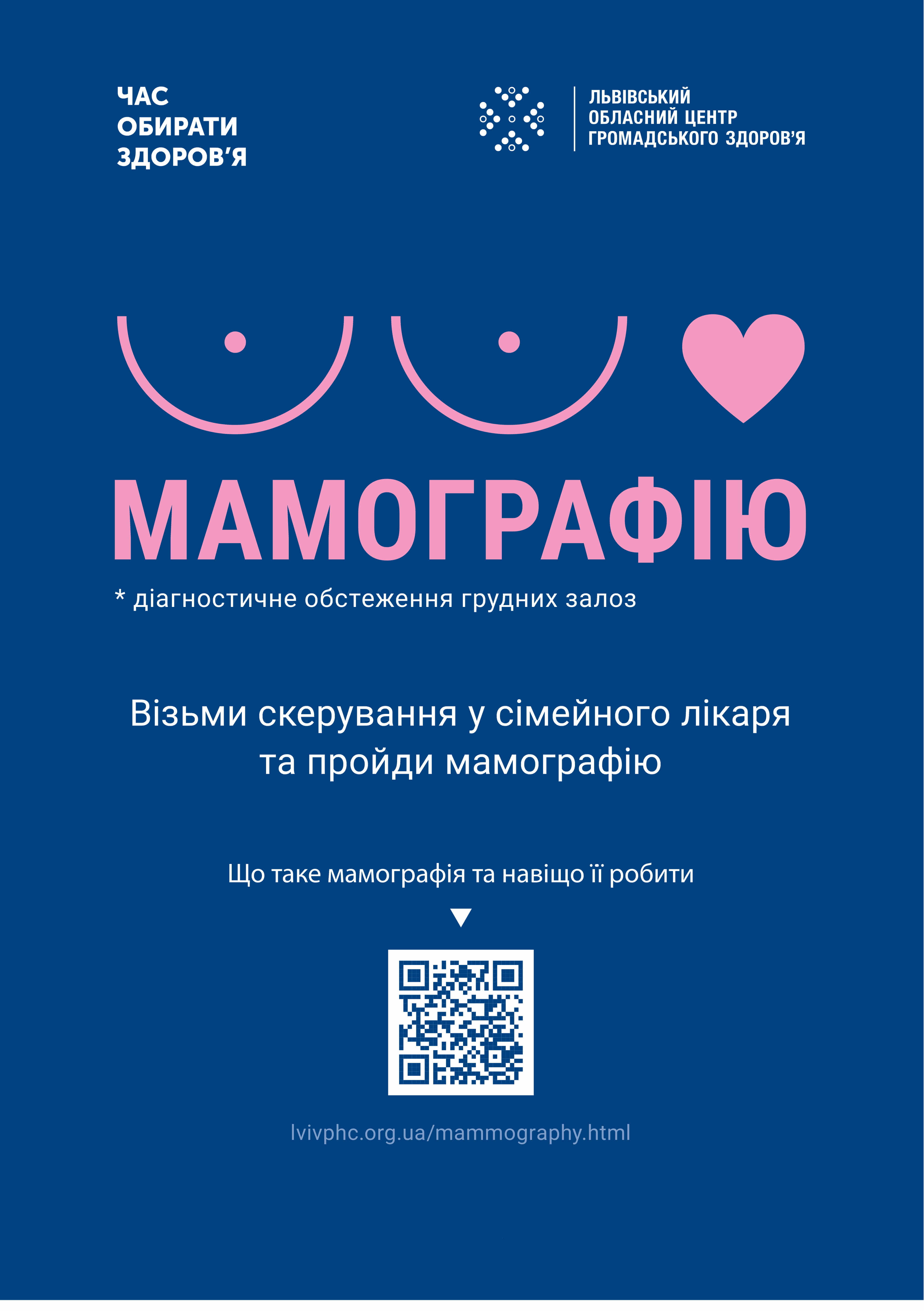 З метою поширення інформації про мамографію серед населення було розпочато інформаційну кампанію. Розроблені інформаційні відео ролики, розміщена зовнішня реклама з інформацією про мамографію на сітілайтах у місті Львові, міських трамваях, у міжміському транспорті.