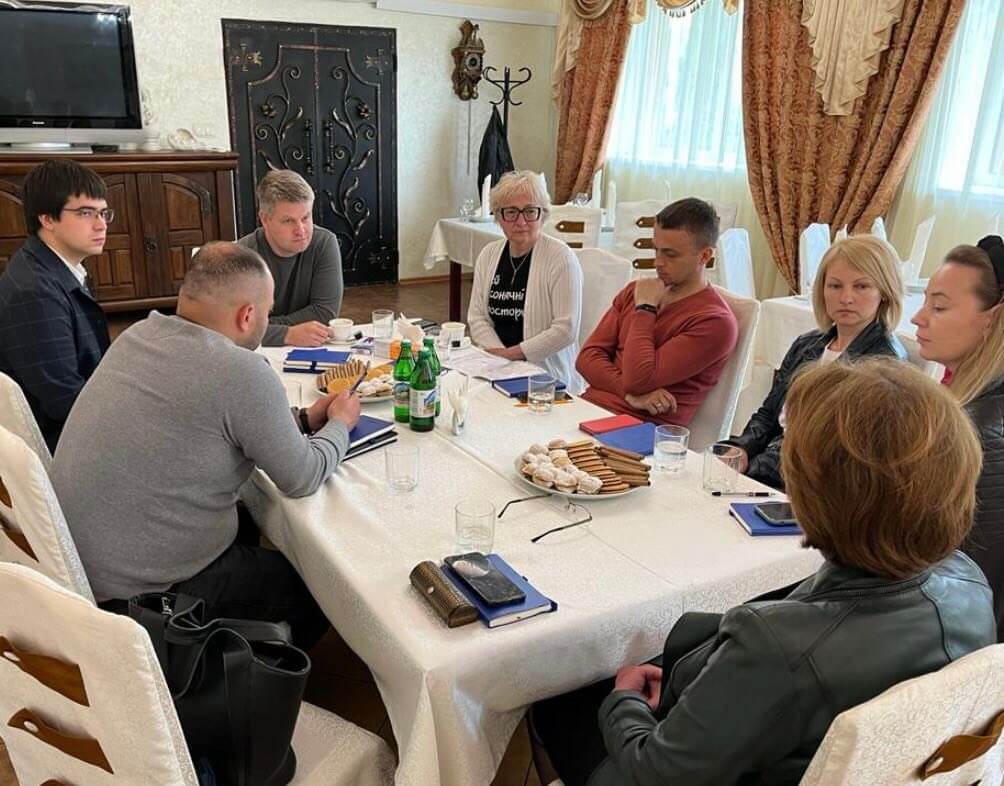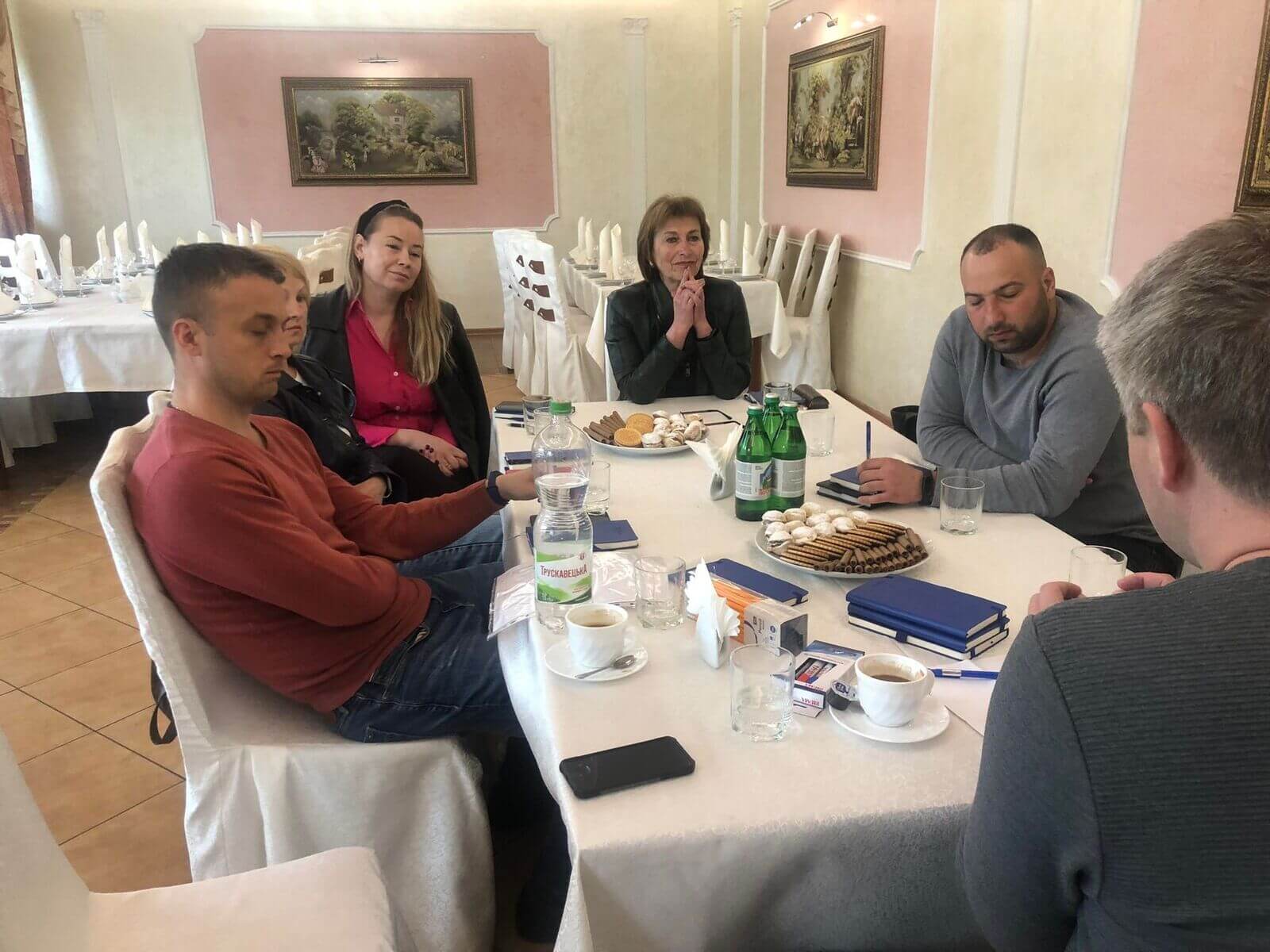 Під час зустрічі з адміністрацією Стрілківськоі територіальної громади обговорювали питання організації надання допомоги внутрішньо переміщеним особам. Фасилітатор заходу - Євген Фєдєчкін.