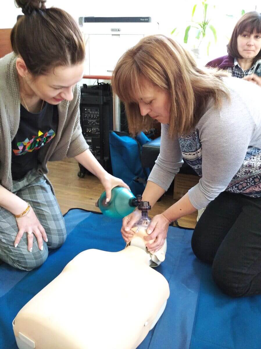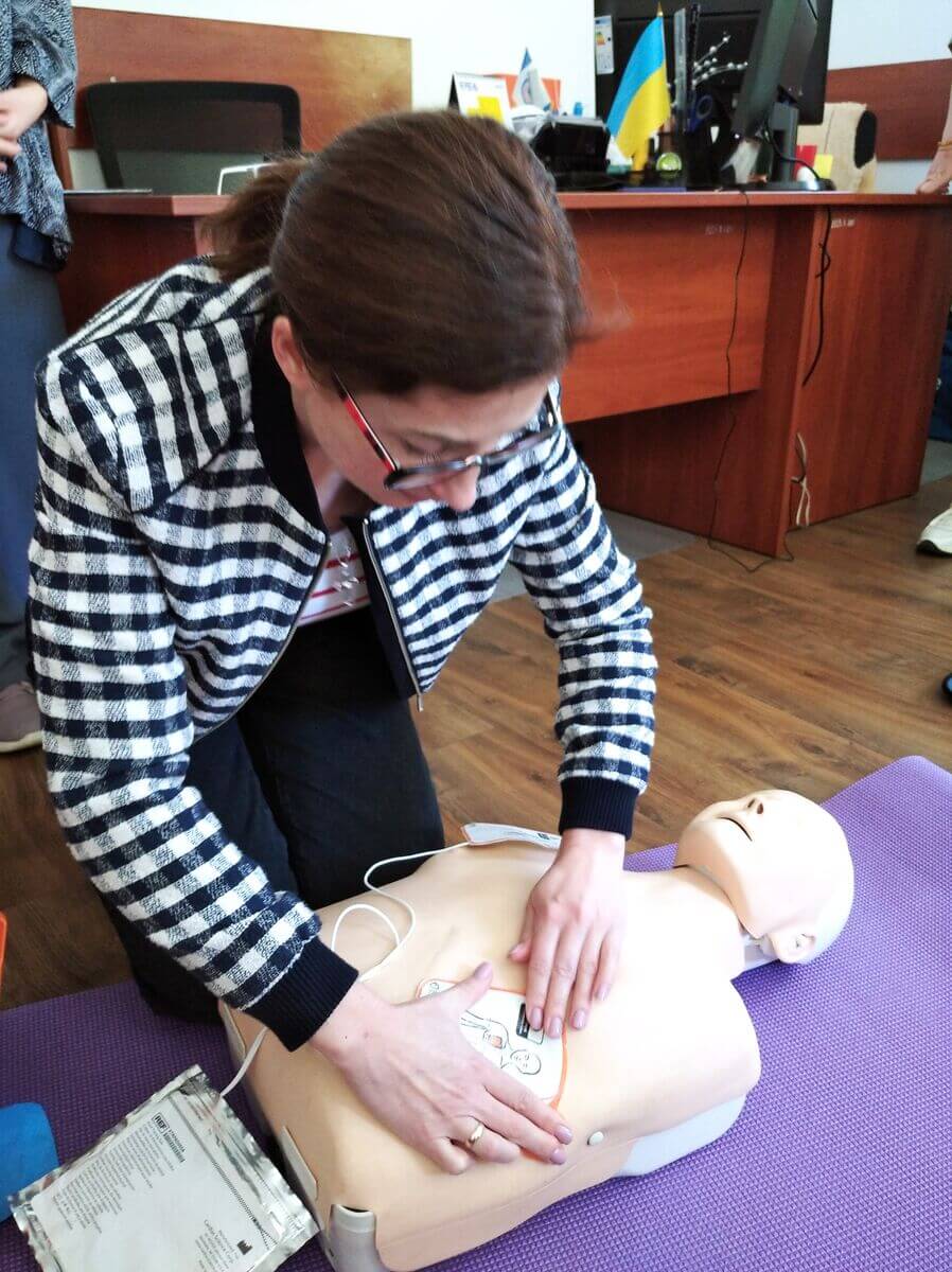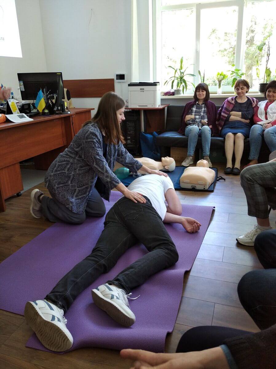 Учасників навчали базовим принципам серцево-легеневої реанімації, правилам користування мішком Амбу та дефібрилятором.
