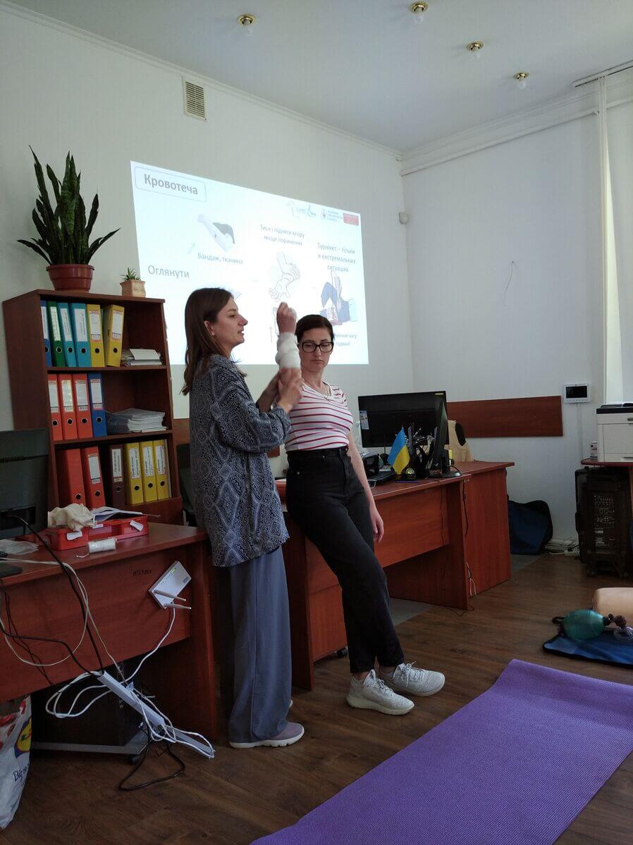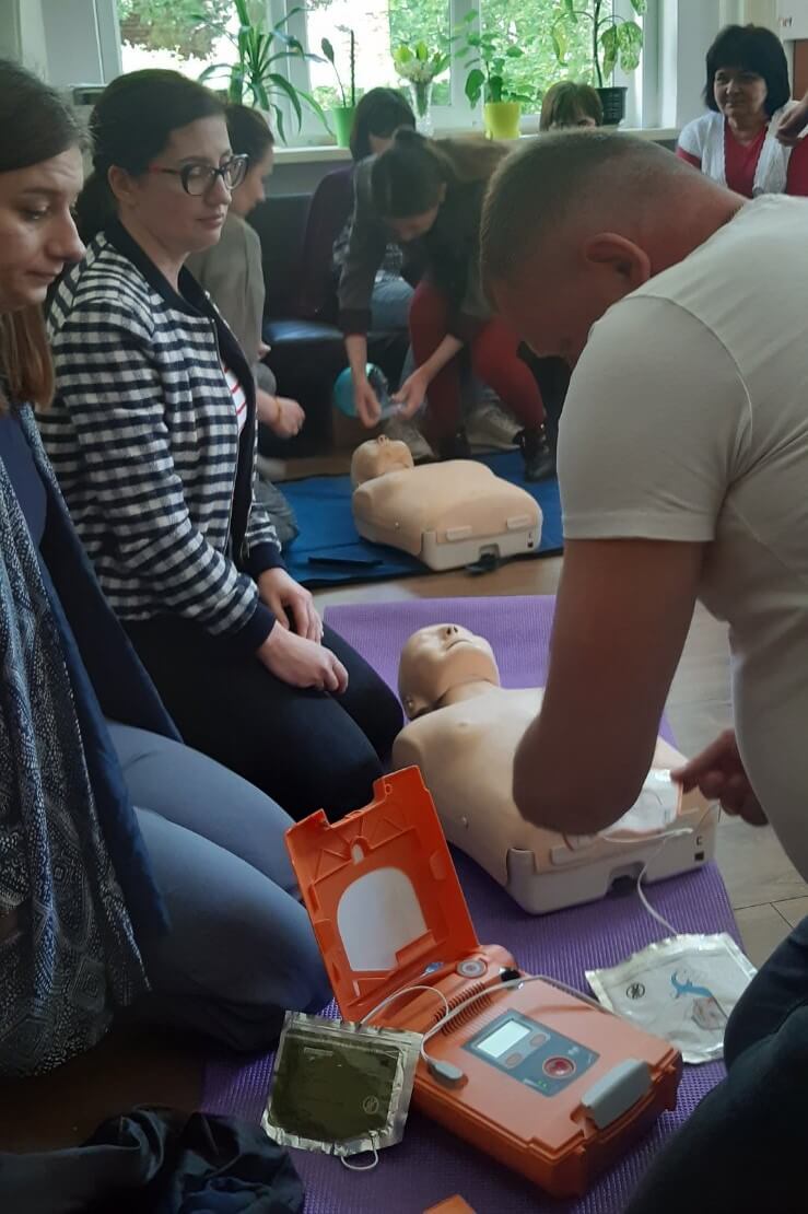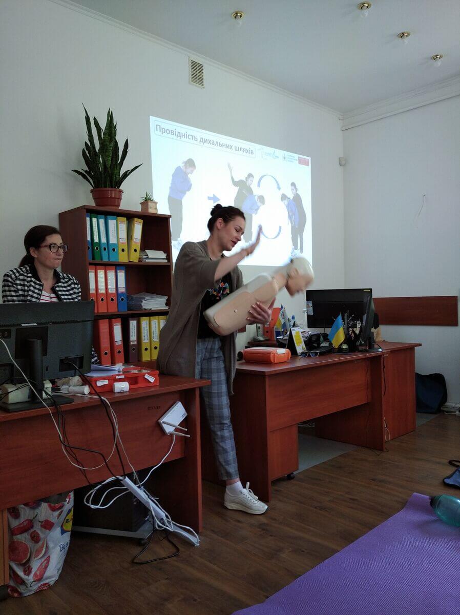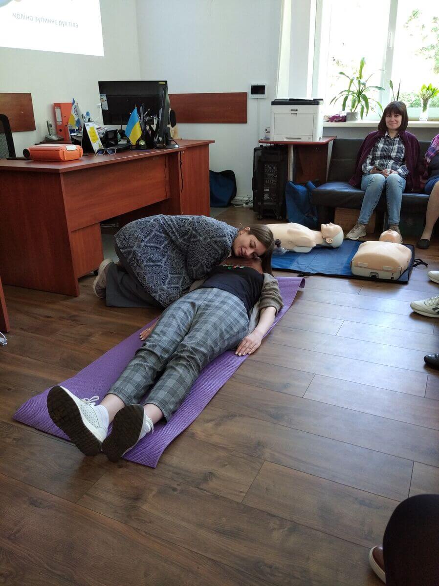 Учасників навчали базовим принципам серцево-легеневої реанімації, правилам користування мішком Амбу та дефібрилятором.