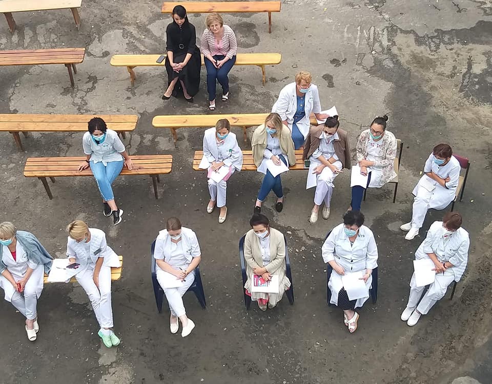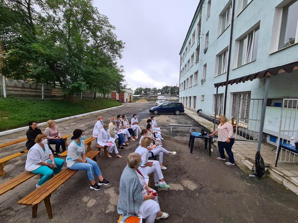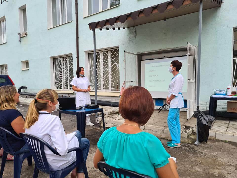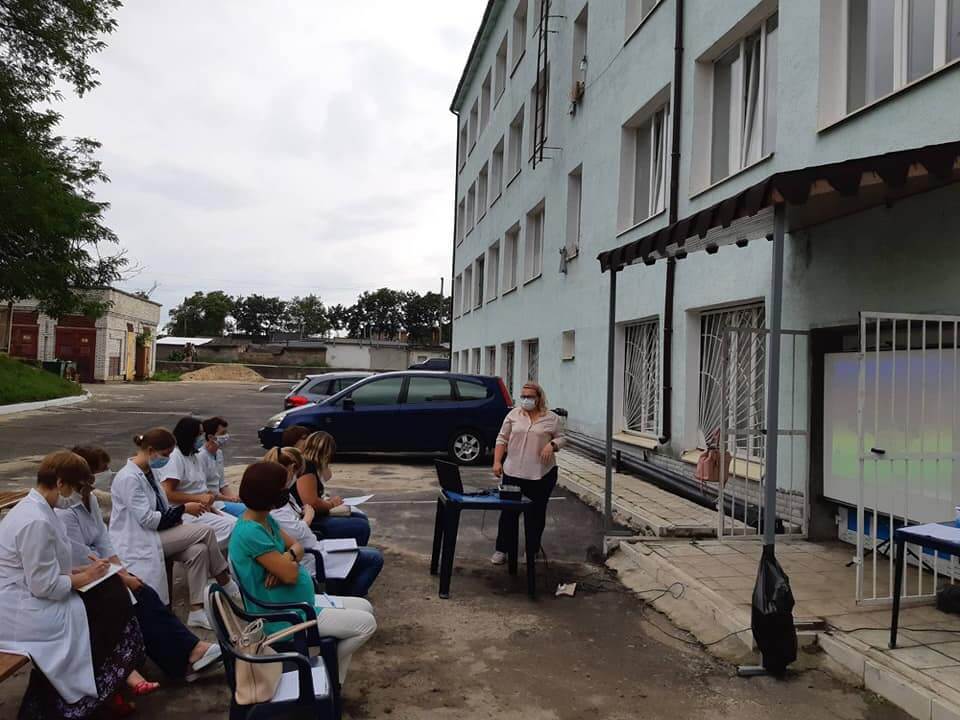 Медики вчаться завжди, навіть в умовах пандемії. Головне, щоб навчання проходило в безпечних умовах. Тренінги відбувались в найкращих традиціях інфекційного контролю з застосуванням нової, «карантинної» технології — OPEN SPACE, тобто, на вулиці
